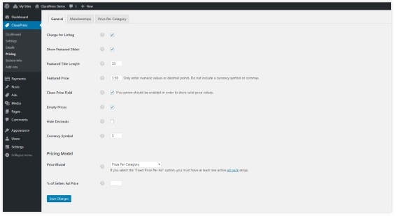 Pilih dari tiga model harga yang berbeda – tetap, persentase, atau kategori – atau cukup gabungkan iklan gratis dan berbayar. Selain itu, Anda dapat mengenakan biaya tambahan untuk dicantumkan di bagian iklan unggulan. ClassiPress juga menyertakan modul Paket Iklan sehingga Anda dapat membuat ketentuan khusus Anda sendiri.