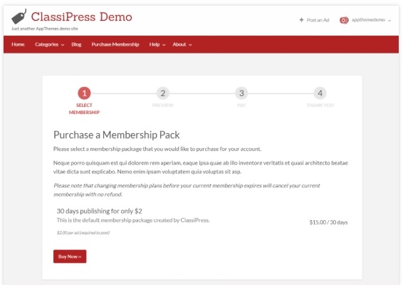 Selain paket iklan khusus yang sudah termasuk dalam ClassiPress, Anda juga dapat mengatur paket keanggotaan bersyarat. Misalnya, buat paket tak terbatas 30 hari di mana pelanggan Anda dapat mengirimkan iklan sebanyak yang mereka inginkan dalam jangka waktu yang ditentukan.