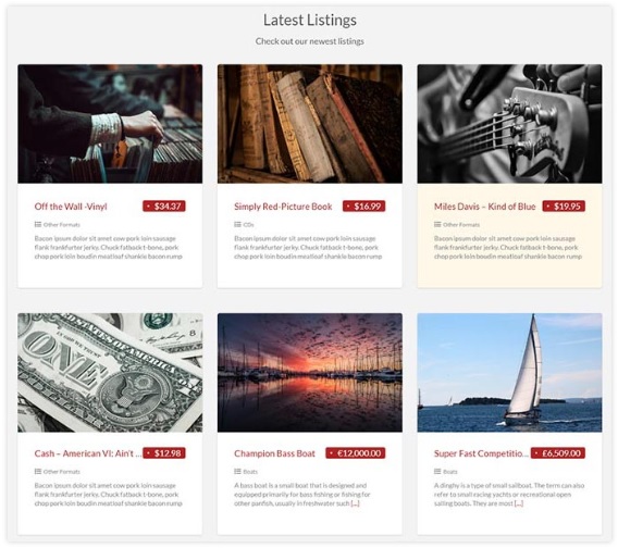Bagian daftar iklan terbaru menampilkan semua iklan baru yang masuk di situs iklan baris Anda. Iklan terbaru ditampilkan menggunakan tampilan kisi. Anda dapat memilih berapa banyak yang ingin Anda tampilkan.